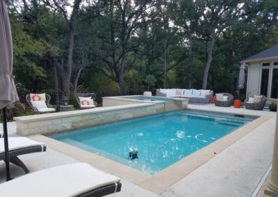 Newly completed pool by Clear Solutions using WetEdge St. Maarten Luna Quartz. What a great use of space this is a very nice pool! The pool was built and designed by Central Texas Pool and Patio.