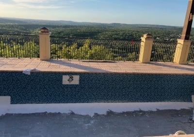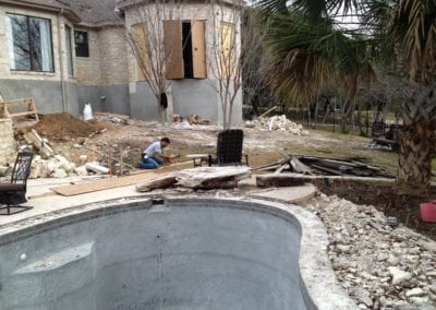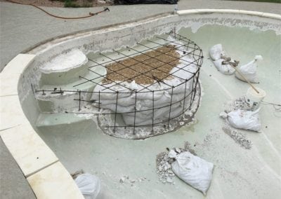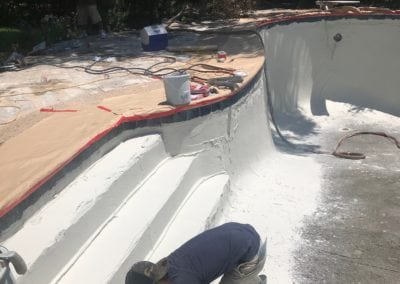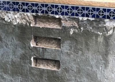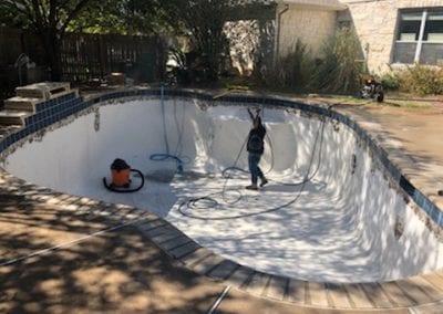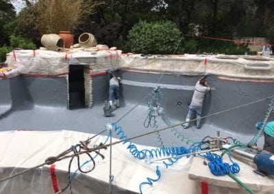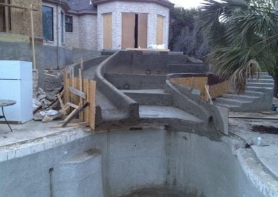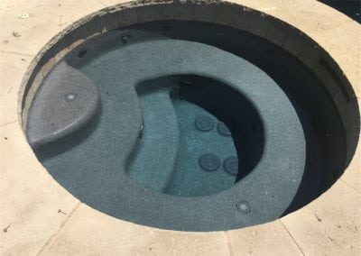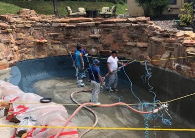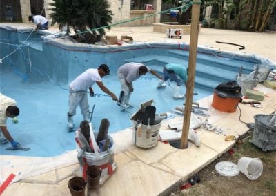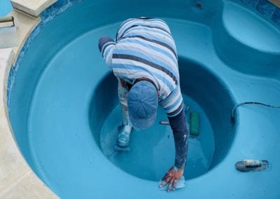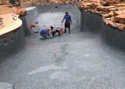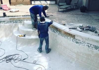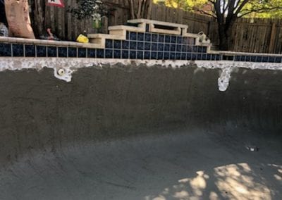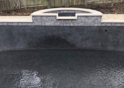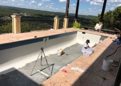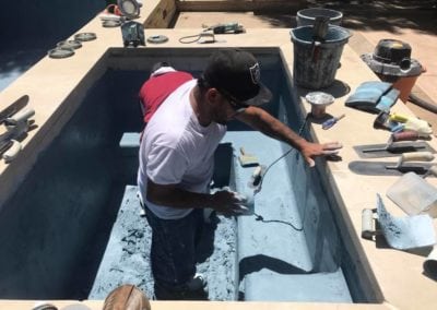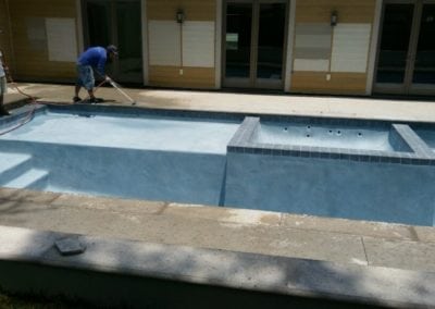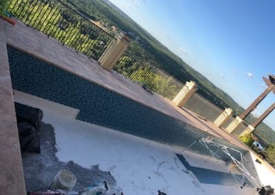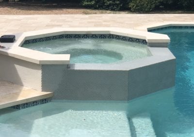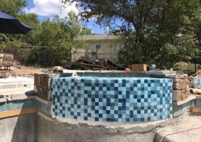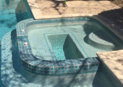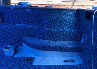 Spa during plaster using Stunning WetEdge Signature Matrix Brilliant Blue. NPT tile in Blue Seas Light Blue with Buff lueder coping.