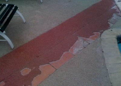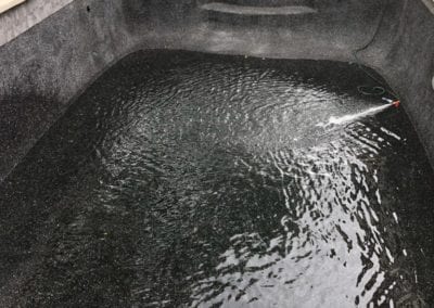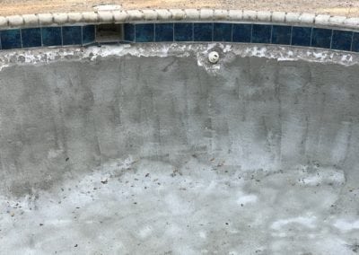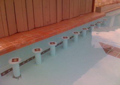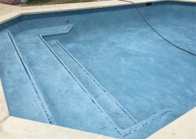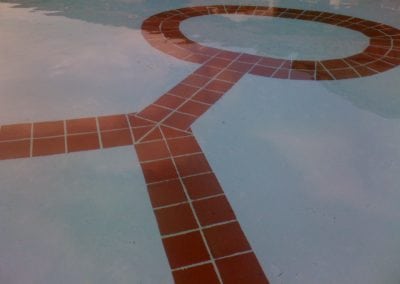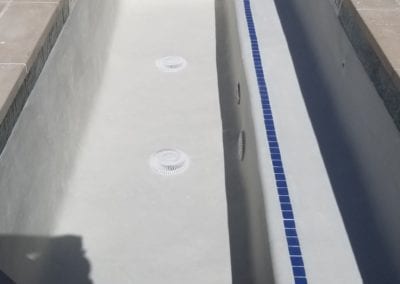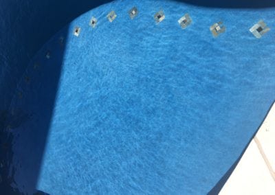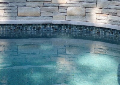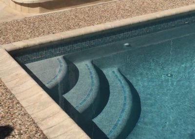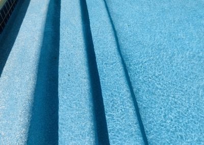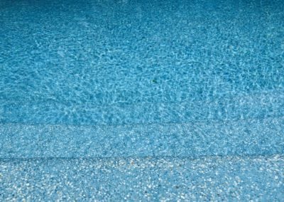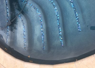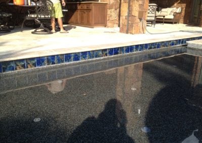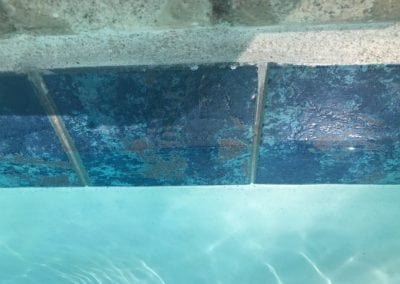 Close up view of NPT Bermuda Tile put in prior to plaster with water in the pool.