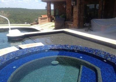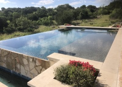 Stunning pool and view completed by Clear Solutions using WetEdge Martinique Luna Quartz. Very nice pool. The pool was built and designed by Central Texas Pool and Patio.