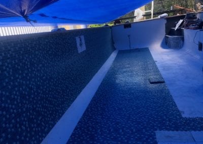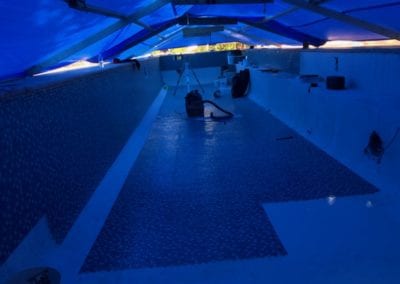 The beginning of a Stunning all glass tile pool using NPT Soleil Cleo 1×1 tile.