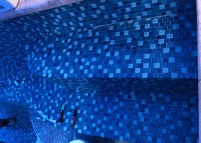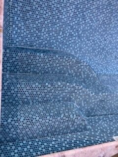 Nearly finished Stunning all glass tile pool using NPT Soleil Cleo 1×1 tile.
