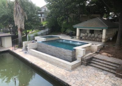 Newly completed pool by Clear Solutions using WetEdge Tahoe Signature Matrix. This is the winner of the Best Outdoor Living Hill Country Builders Association parade of homes for 2019. It is absolutely stunning! The pool was built and designed by Central Texas Pool and Patio.