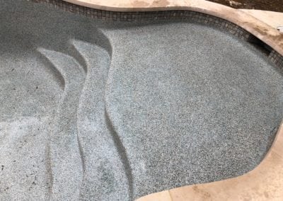 Wet-Edge Serenity Stone Mystic Breeze plaster was used for this breathtaking pool. Photo taken with pump on and water flowing.