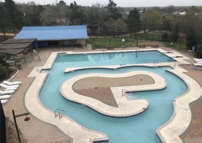 Tejas Christian Retreat Center Pool in Giddings, Texas. We used Universal White Commercial Quartz Ultra Blue finish.
