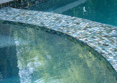 Stunning all glass tile pool using NPT Soleil Cleo 1×1 tile.